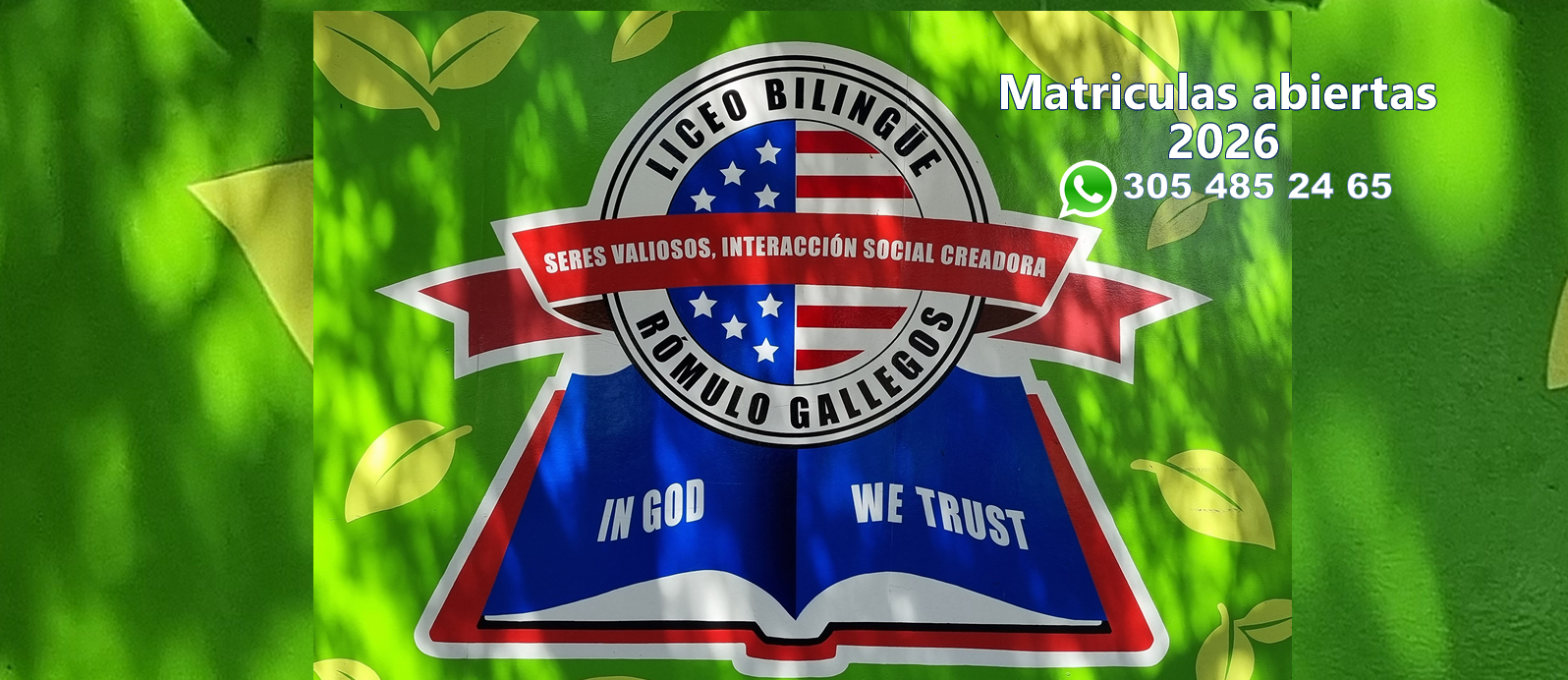El Liceo Bilingüe Rómulo Gallegos, institución educativa de naturaleza privada es una comunidad que centra su labor en educar niñ@s y jóvenes hacia un pleno desarrollo integral Bilingüe, ayudamos a nuestras familias a formar ciudadanos con alto sentido de compromiso, promovemos una formación en valores, así como fomentamos el amor y cuidado por la naturaleza y el medio ambiente.